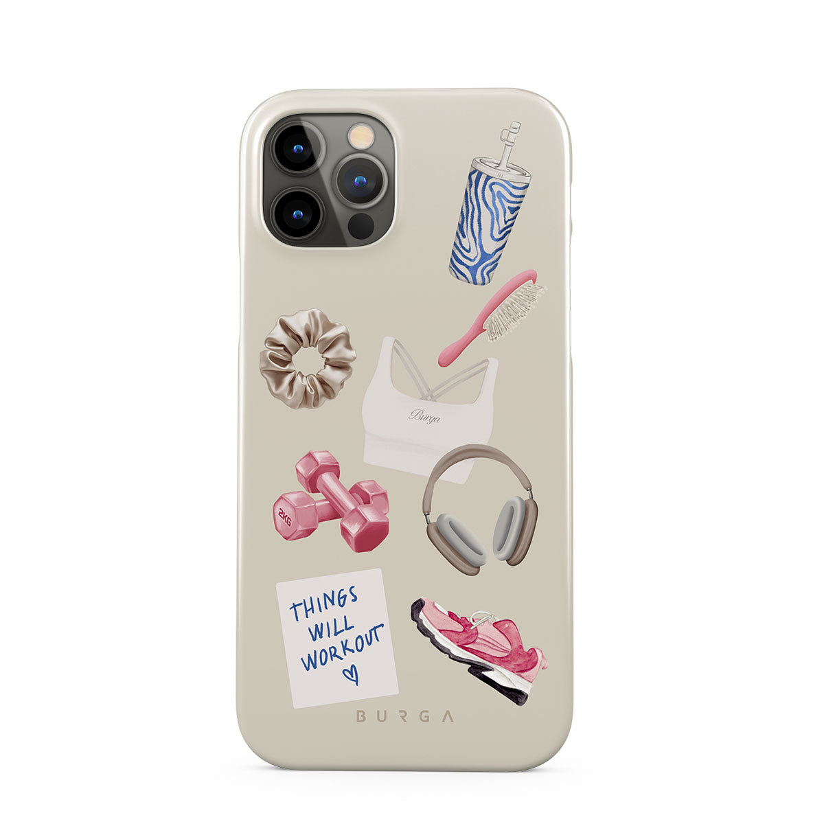 Główne elementy projektu: hantle, słuchawki, kubek termiczny, szczotkę do włosów, różowe sneakersy, sportowy stanik, baton Crunchie, karteczkę „Things Will Work Out”.