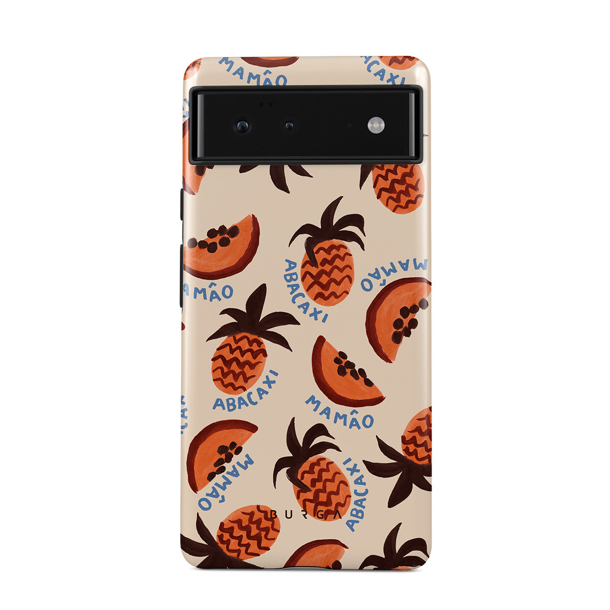 Główne elementy projektu: ananas, papaja, tropikalny wzór
