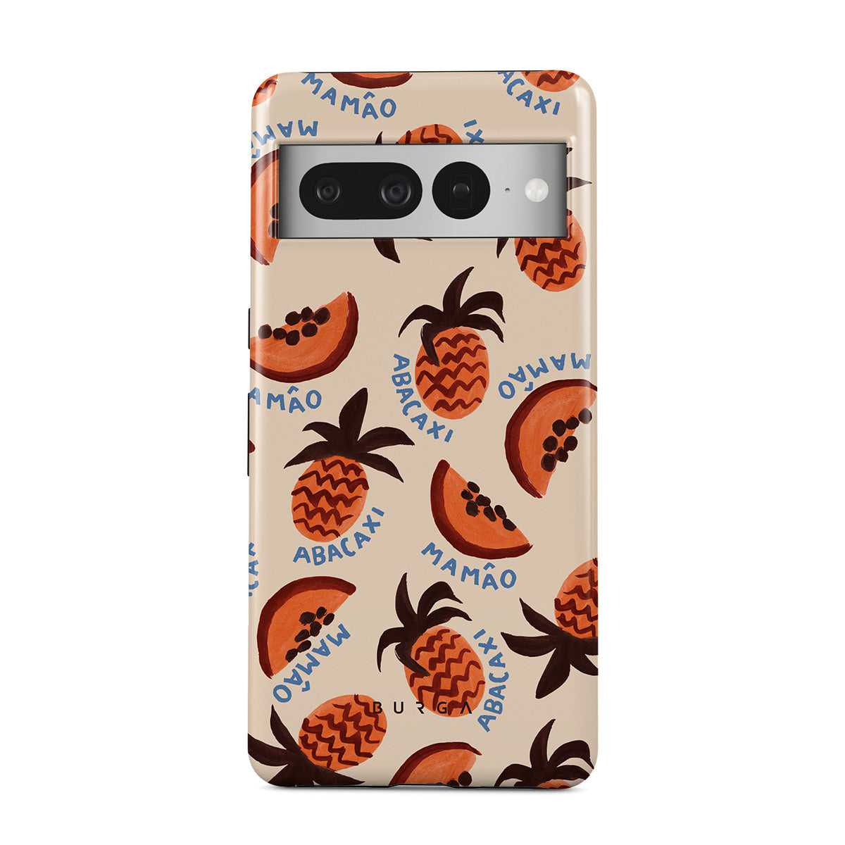Główne elementy projektu: ananas, papaja, tropikalny wzór