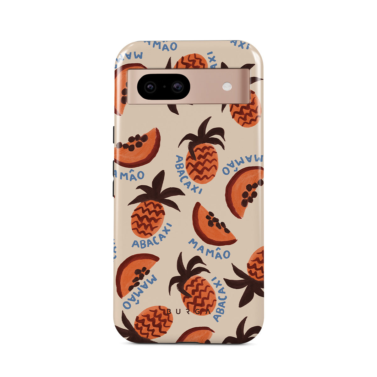 Główne elementy projektu: ananas, papaja, tropikalny wzór