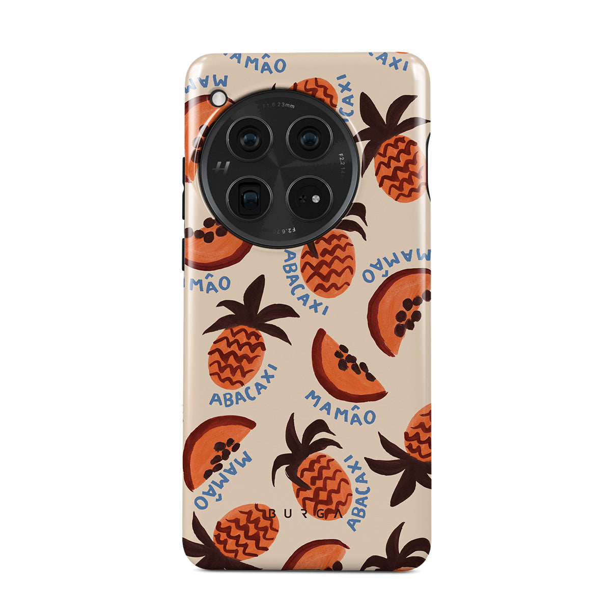 Główne elementy projektu: ananas, papaja, tropikalny wzór