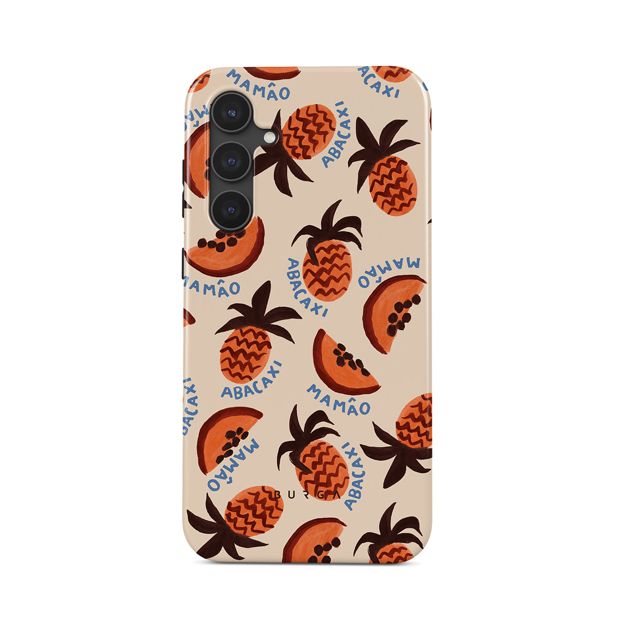 Główne elementy projektu: ananas, papaja, tropikalny wzór