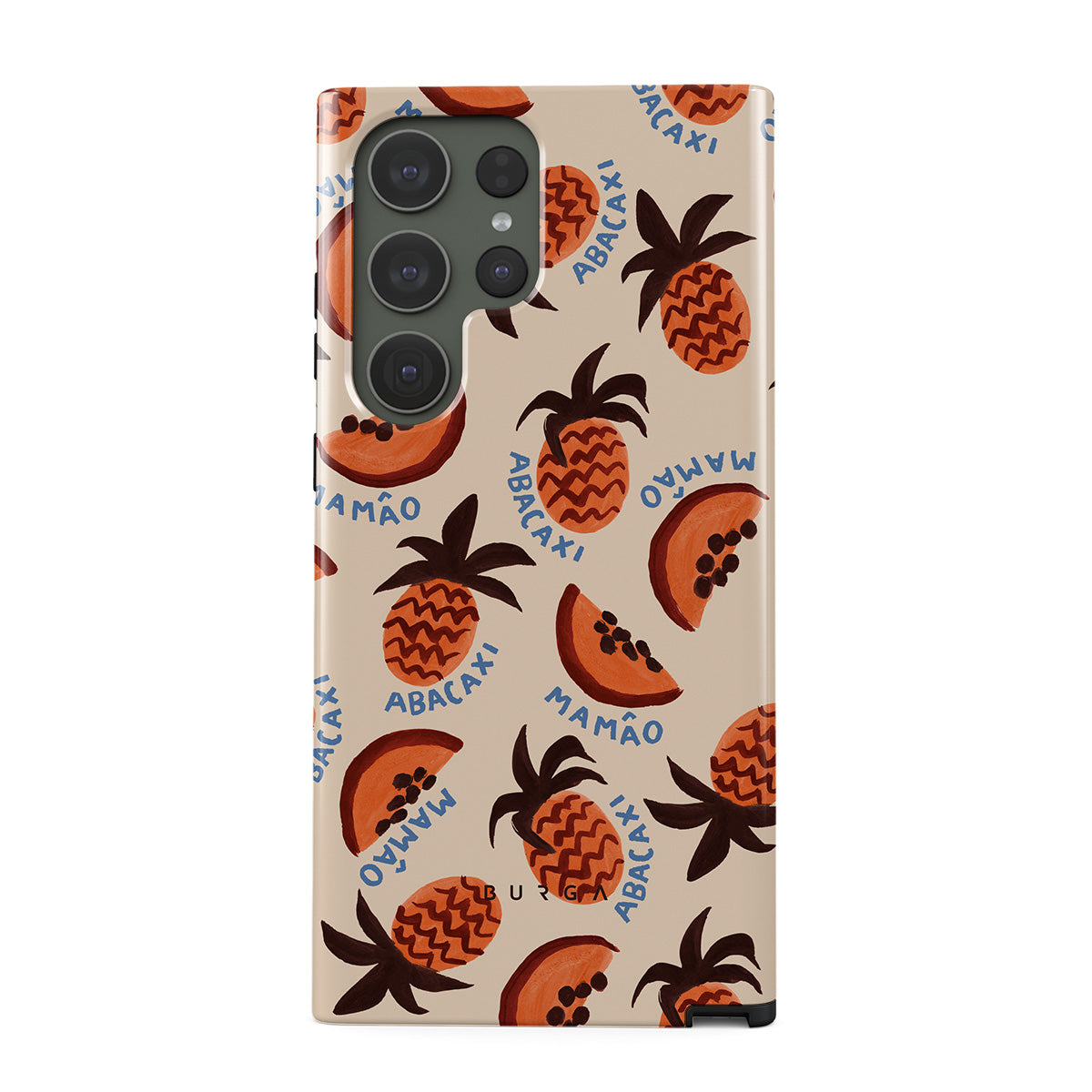 Główne elementy projektu: ananas, papaja, tropikalny wzór