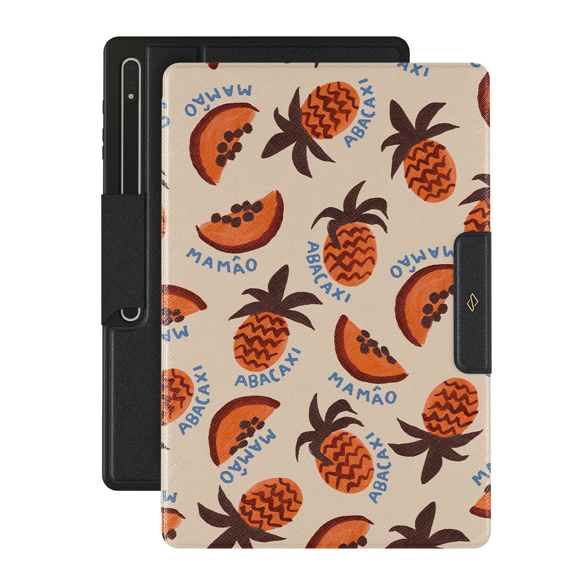 Główne elementy projektu: ananas, papaja, tropikalny wzór