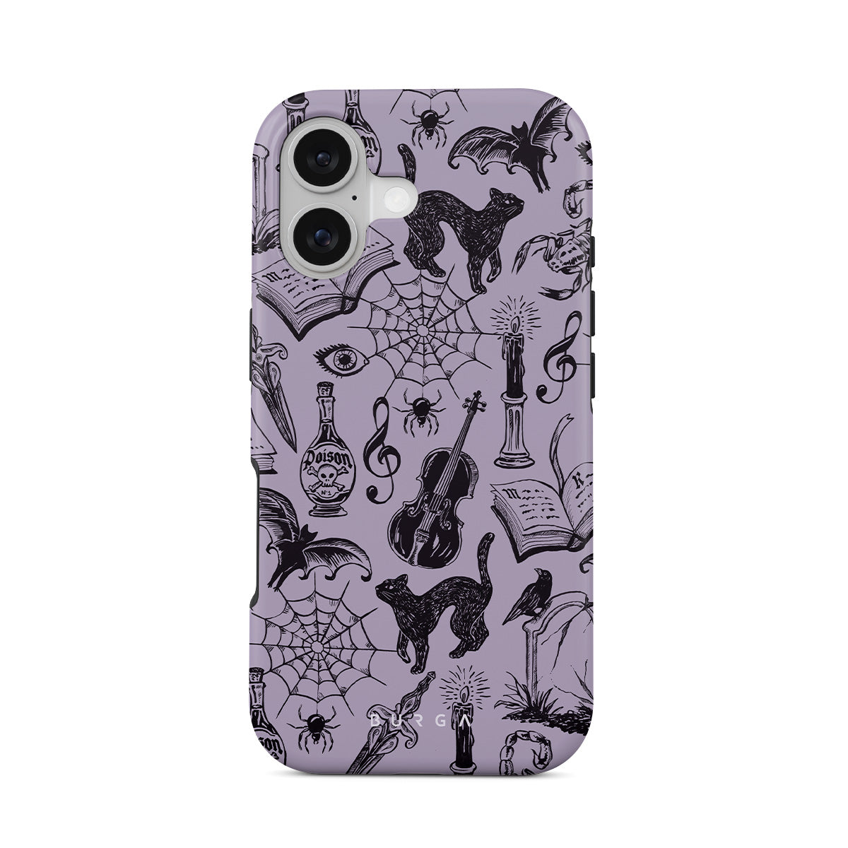 Główne elementy projektu: gotyckie bazgroły, mistyczne elementy, pająki, pajęczyna, kot, skrzypce, oko, świeca, sztylet, książka, nietoperz, kruk, skorpion