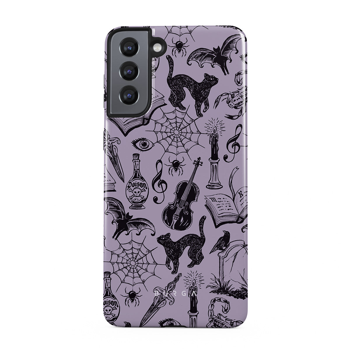 Główne elementy projektu: gotyckie bazgroły, mistyczne elementy, pająki, pajęczyna, kot, skrzypce, oko, świeca, sztylet, książka, nietoperz, kruk, skorpion