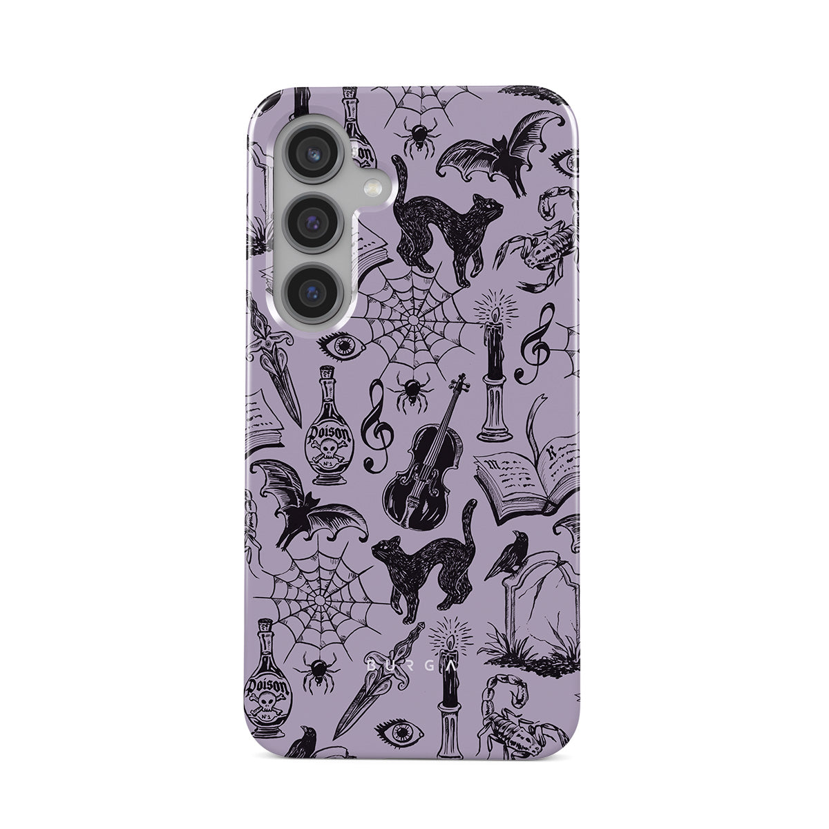 Główne elementy projektu: gotyckie bazgroły, mistyczne elementy, pająki, pajęczyna, kot, skrzypce, oko, świeca, sztylet, książka, nietoperz, kruk, skorpion