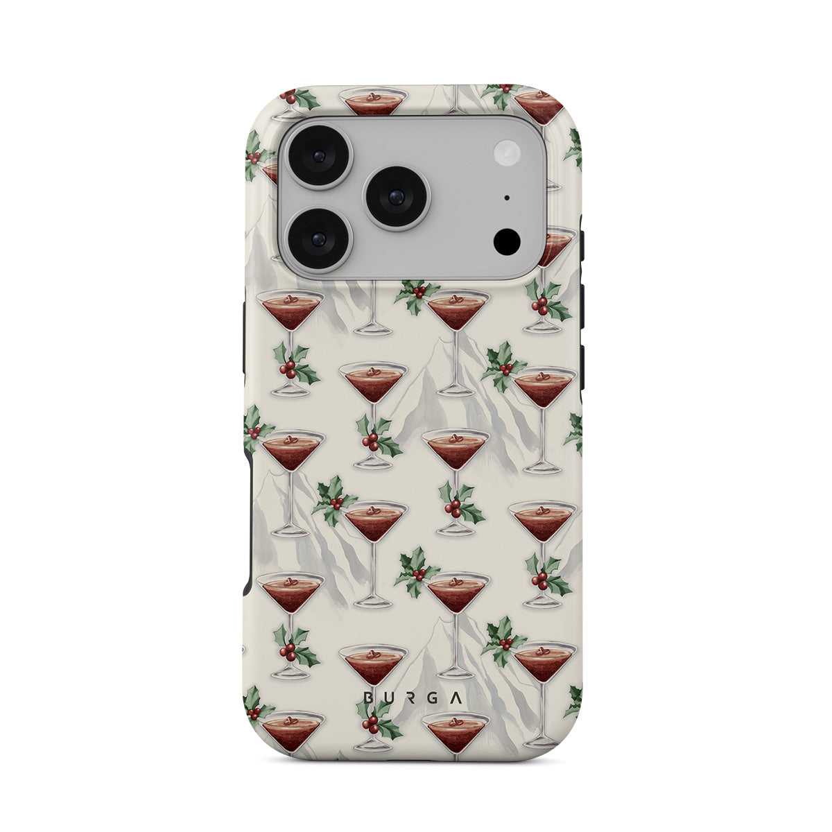 Główne elementy projektu: kieliszki do koktajli, martini, liście ostrokrzewu