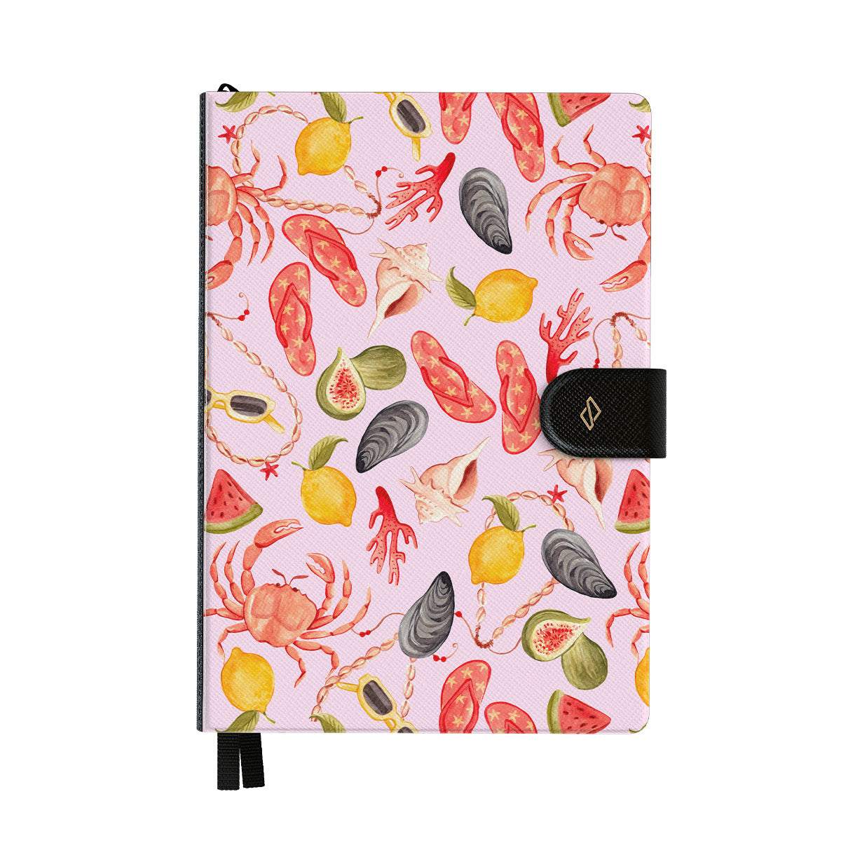 Wykończony piękną, wegańską skórą Saffiano, zabezpieczony eleganckim zapięciem magnetycznym i wystarczająco trwały, by poradzić sobie z rozlaną kawą oraz momentami, w których chciałoby się powiedzieć „ups”.