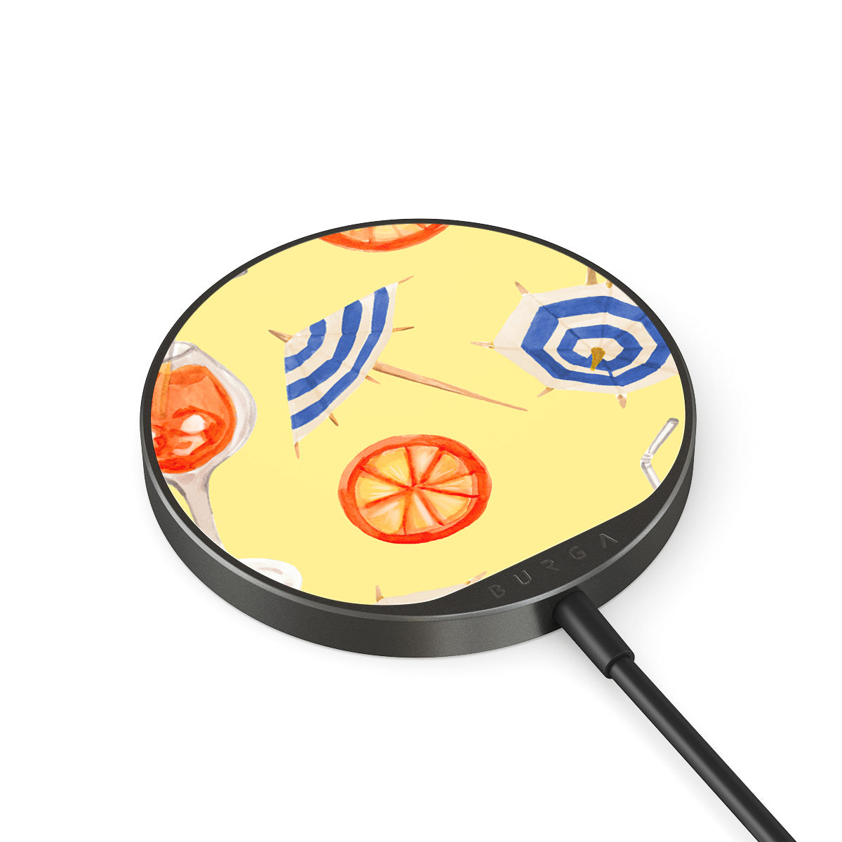 Zintegrowany przewód o długości 1,5 m ułatwia ładowanie urządzenia w dowolnym miejscu – w biurze, na kanapie lub w poczekalni na lotnisku. Ponadto szklana tylna część BURGA z ponad 500 wzorami do wyboru sprawia, że Twoja ładowarka wygląda równie dobrze jak etui.