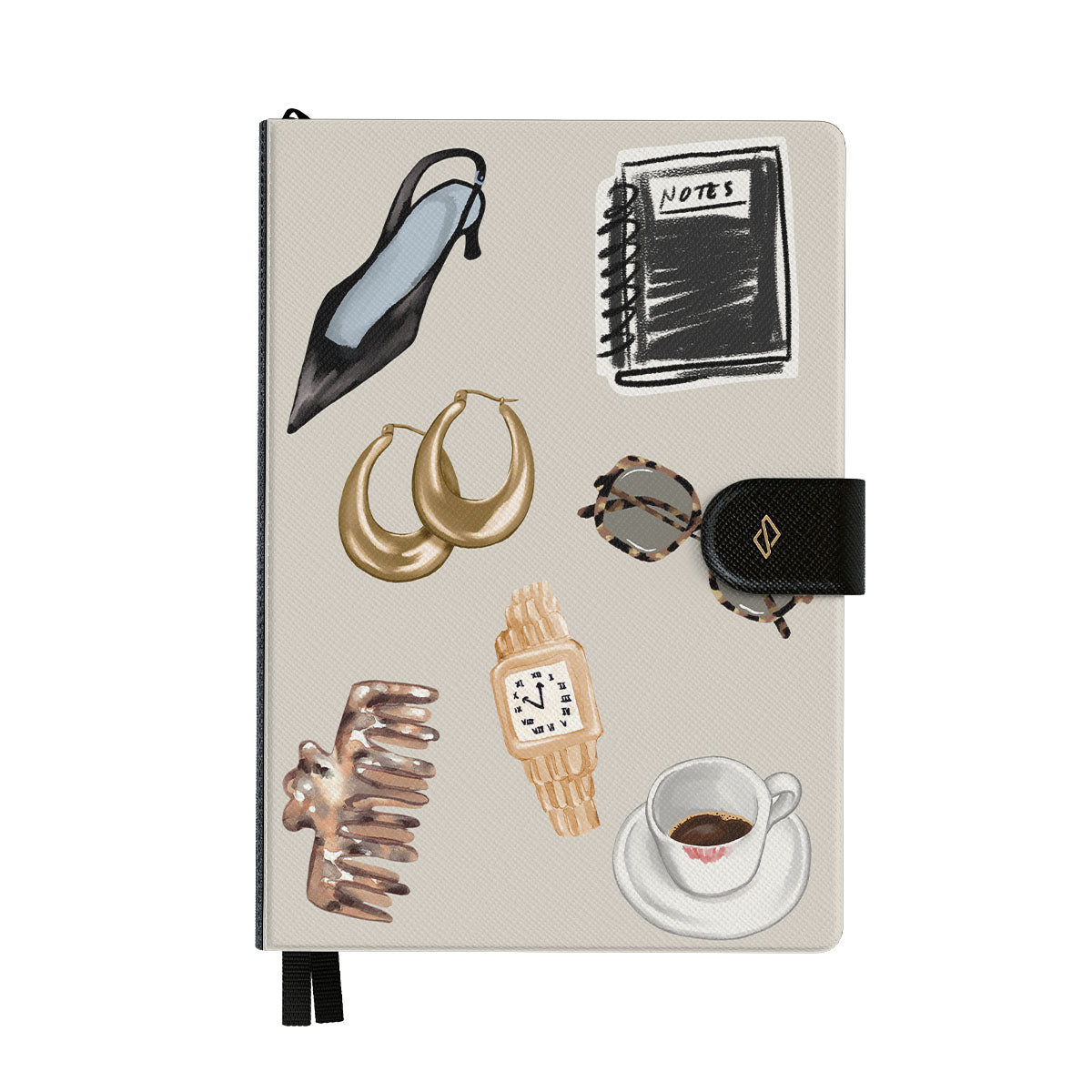 Wykończony piękną, wegańską skórą Saffiano, zabezpieczony eleganckim zapięciem magnetycznym i wystarczająco trwały, by poradzić sobie z rozlaną kawą oraz momentami, w których chciałoby się powiedzieć „ups”.