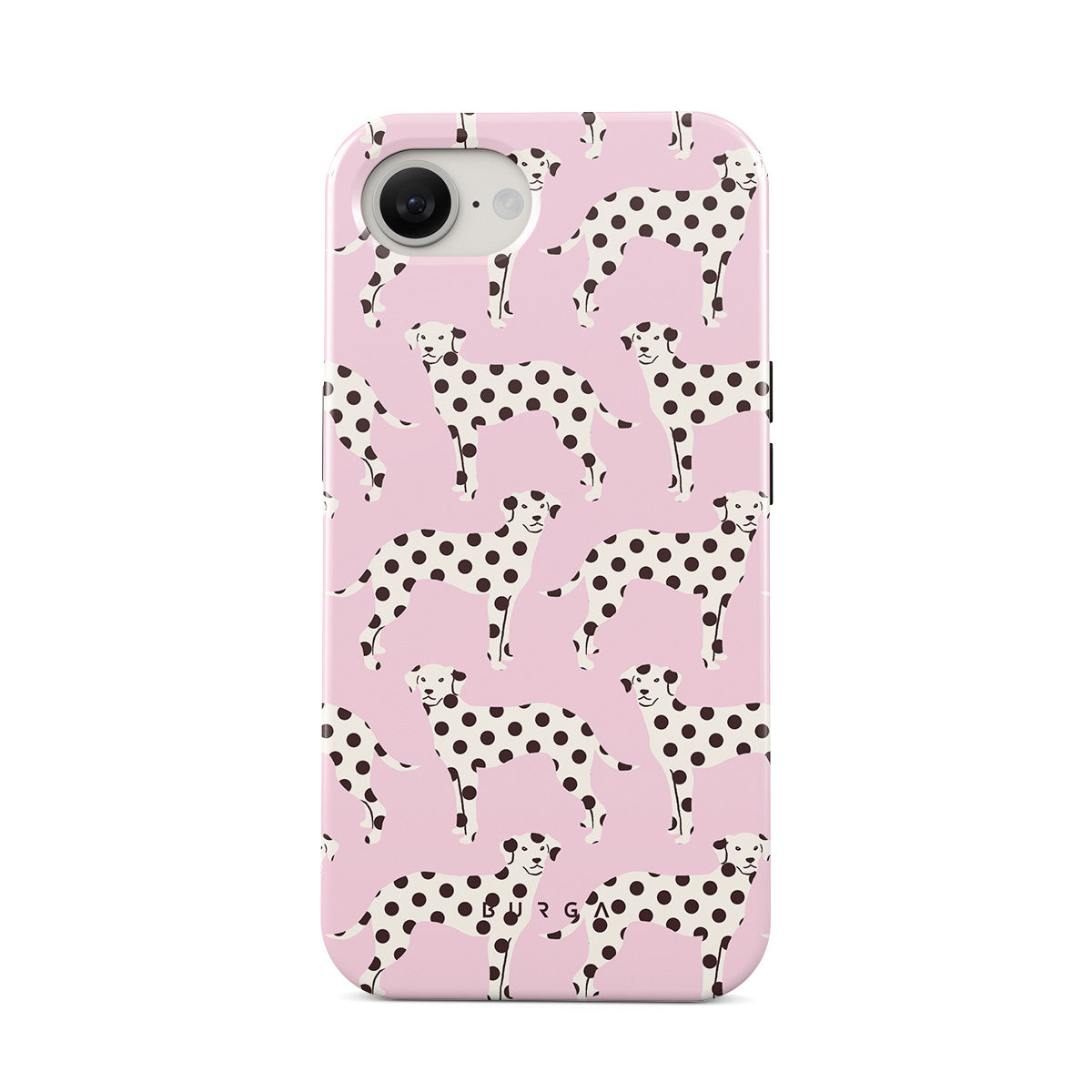 Główne elementy projektu: dalmatyńczyki na jasnoróżowym tle, psy.