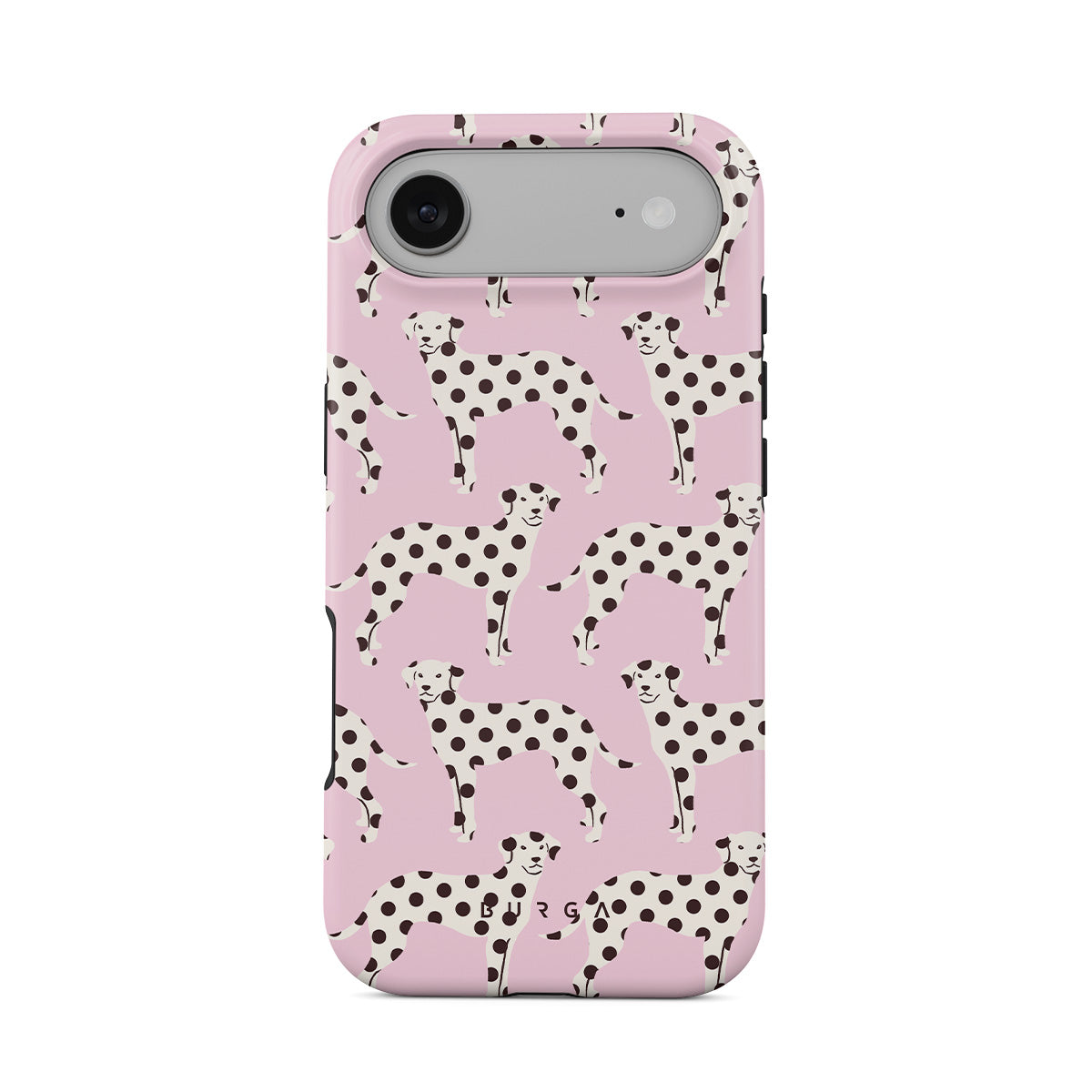 Główne elementy projektu: dalmatyńczyki na jasnoróżowym tle, psy.