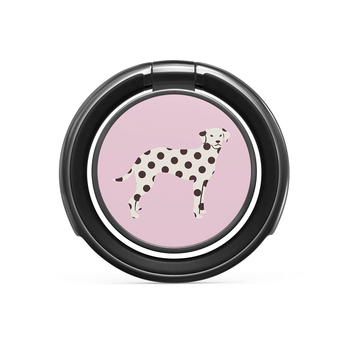 Główne elementy projektu: dalmatyńczyki na jasnoróżowym tle, psy.