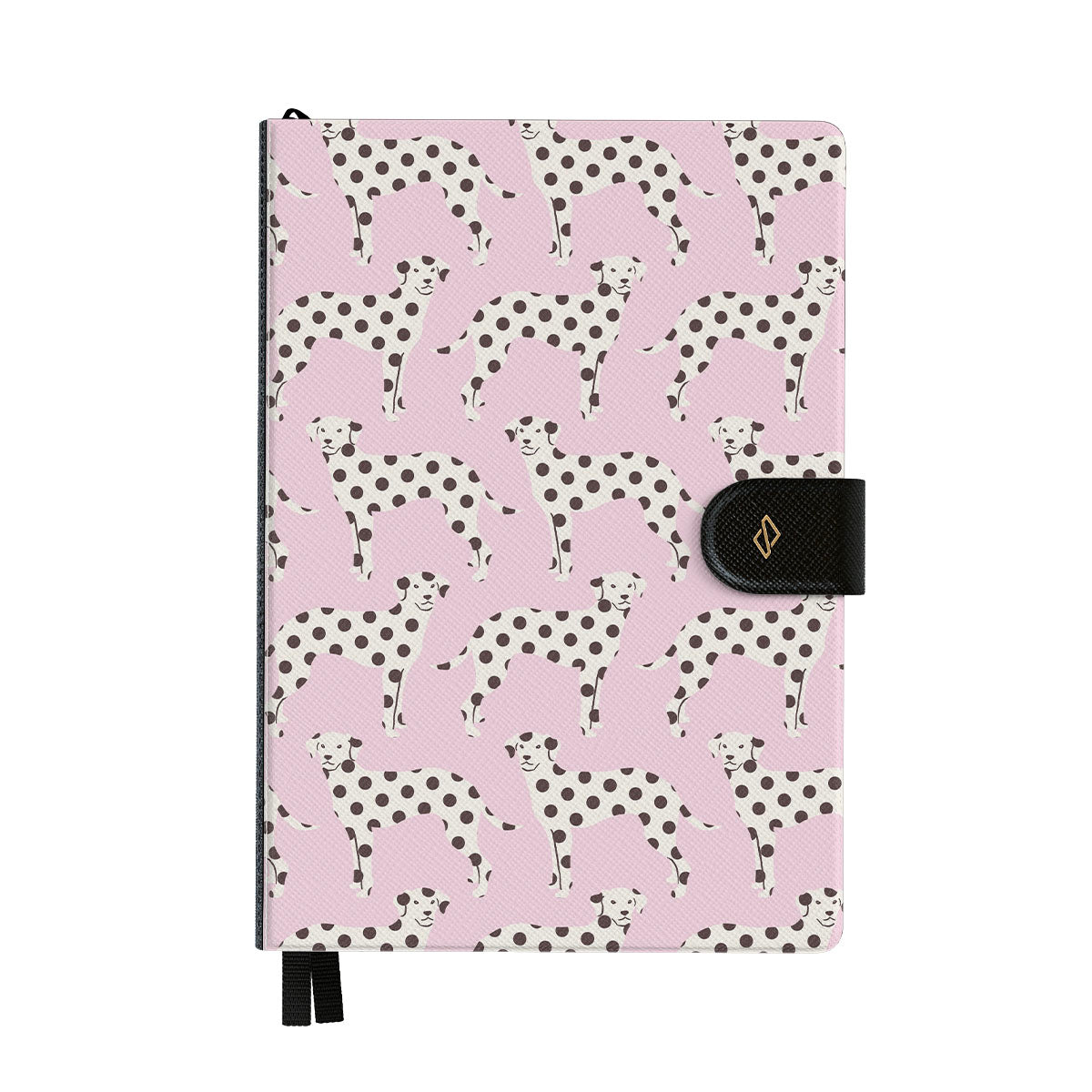 Główne elementy projektu: dalmatyńczyki na jasnoróżowym tle, psy.