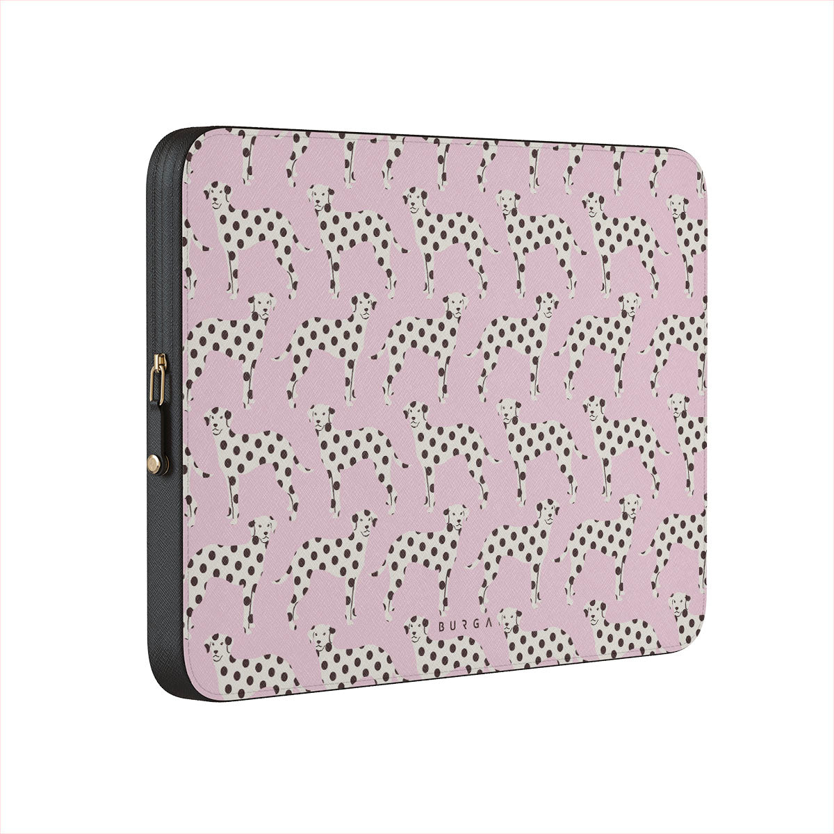 Główne elementy projektu: dalmatyńczyki na jasnoróżowym tle, psy.
