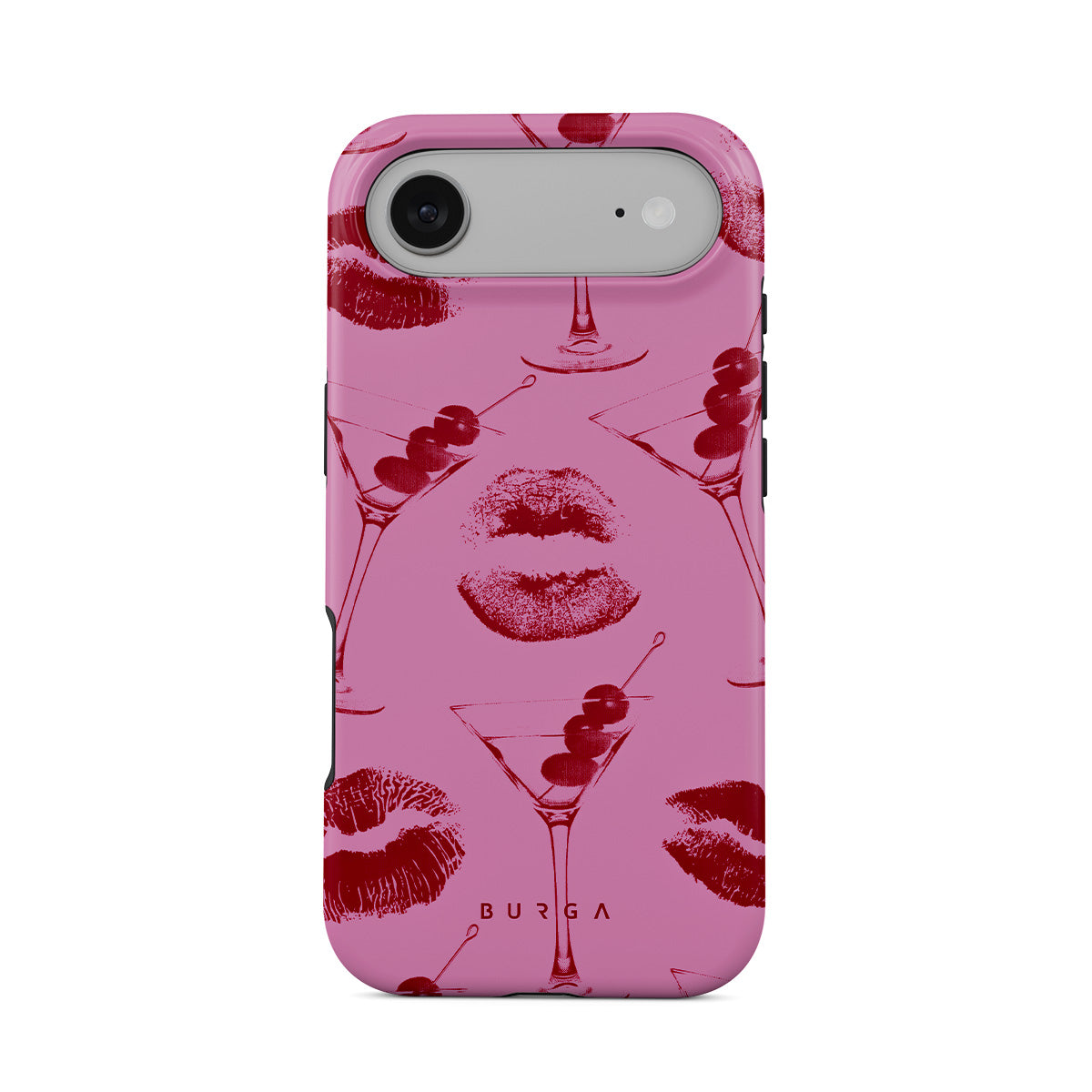 Główne elementy projektu: czerwone usta, pocałunki, kieliszki koktajlowe, martini.