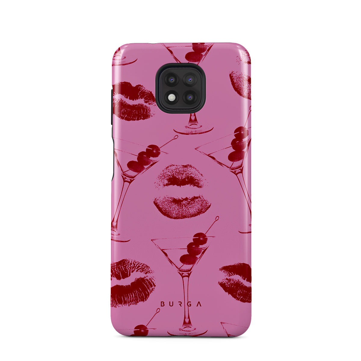 Główne elementy projektu: czerwone usta, pocałunki, kieliszki koktajlowe, martini.