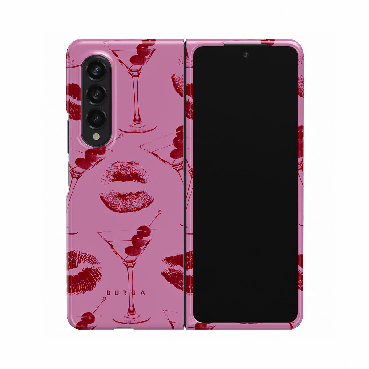 Główne elementy projektu: czerwone usta, pocałunki, kieliszki koktajlowe, martini.