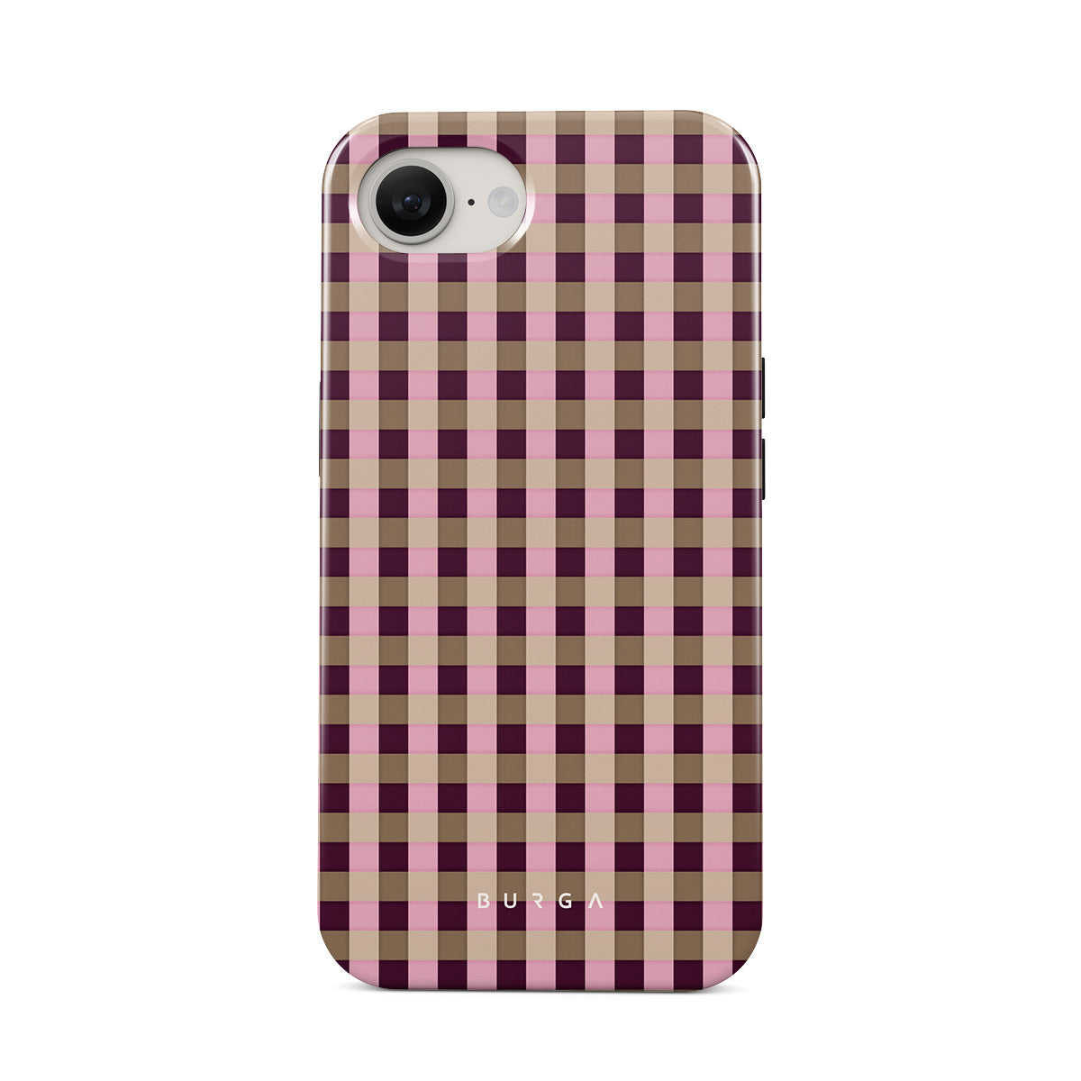 Główne elementy projektu: różowo-bordowy wzór w kratkę, nowoczesny styl.