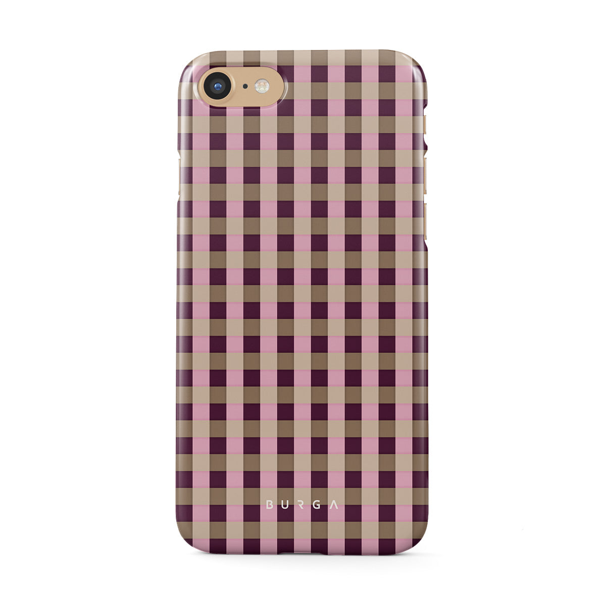 Główne elementy projektu: różowo-bordowy wzór w kratkę, nowoczesny styl.