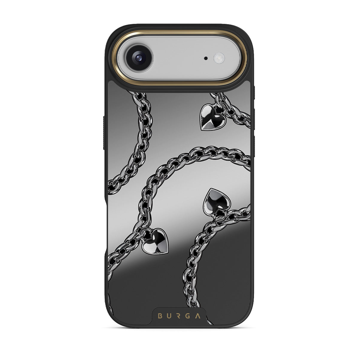 Główne elementy projektu: łańcuchy, serca, srebro, metaliczne detale, lustro