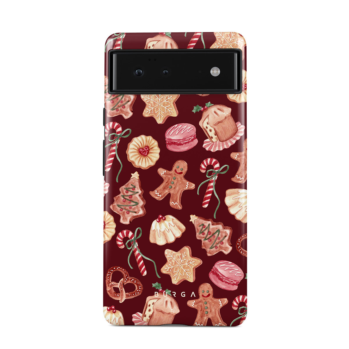 Główne elementy projektu: ciasteczka świąteczne, pierniczki, cukierki, cukierki miętowe, świąteczne słodycze, burgundowe tło