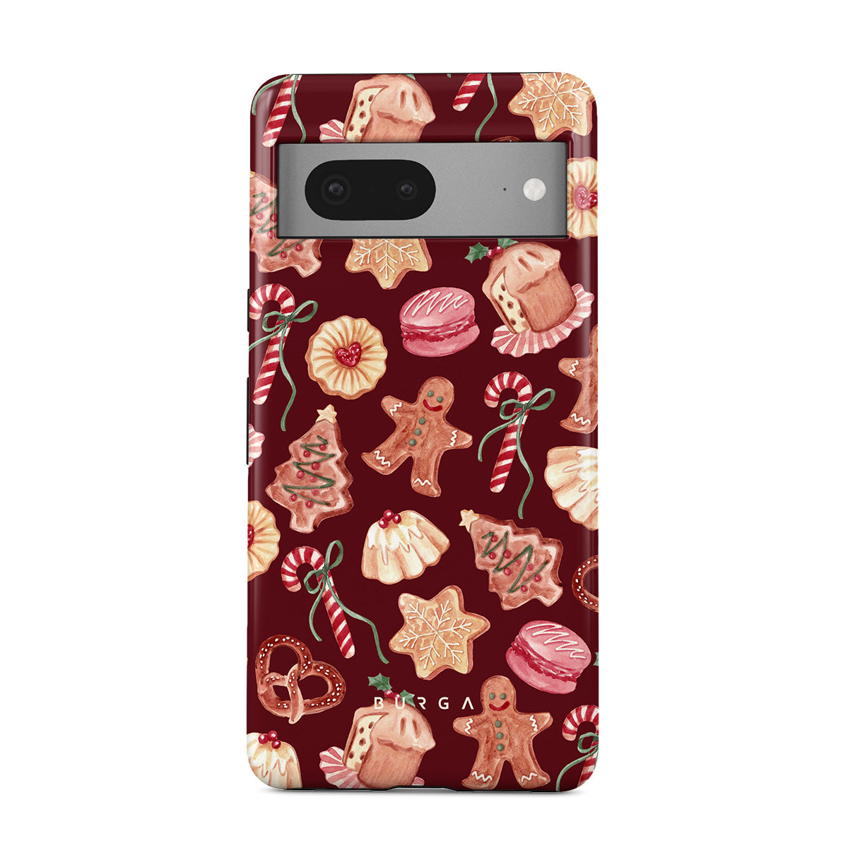 Główne elementy projektu: ciasteczka świąteczne, pierniczki, cukierki, cukierki miętowe, świąteczne słodycze, burgundowe tło