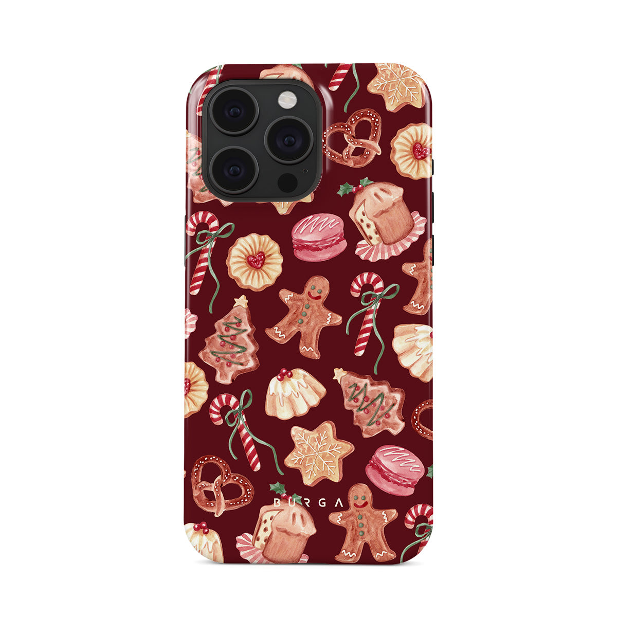 Główne elementy projektu: ciasteczka świąteczne, pierniczki, cukierki, cukierki miętowe, świąteczne słodycze, burgundowe tło