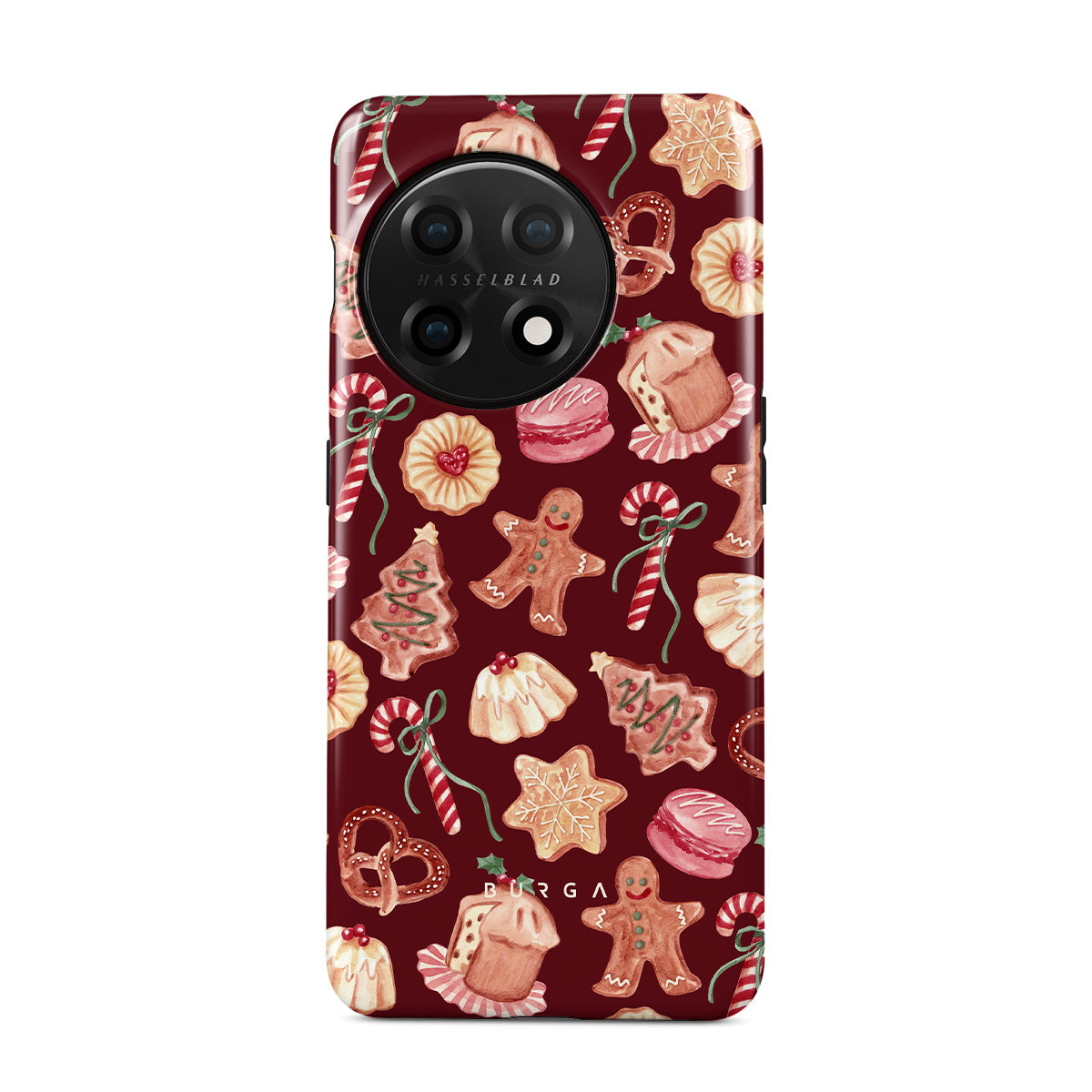 Główne elementy projektu: ciasteczka świąteczne, pierniczki, cukierki, cukierki miętowe, świąteczne słodycze, burgundowe tło