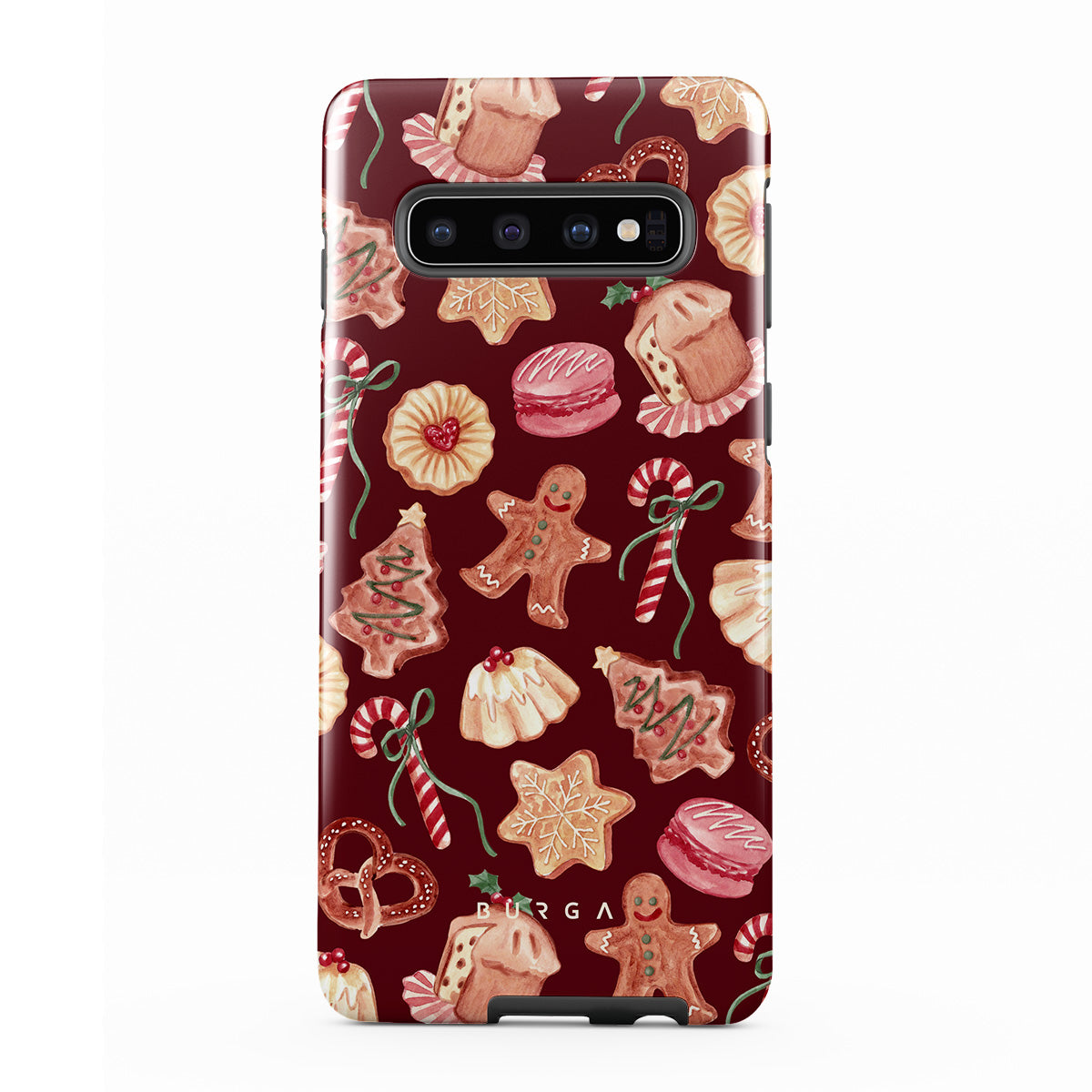Główne elementy projektu: ciasteczka świąteczne, pierniczki, cukierki, cukierki miętowe, świąteczne słodycze, burgundowe tło