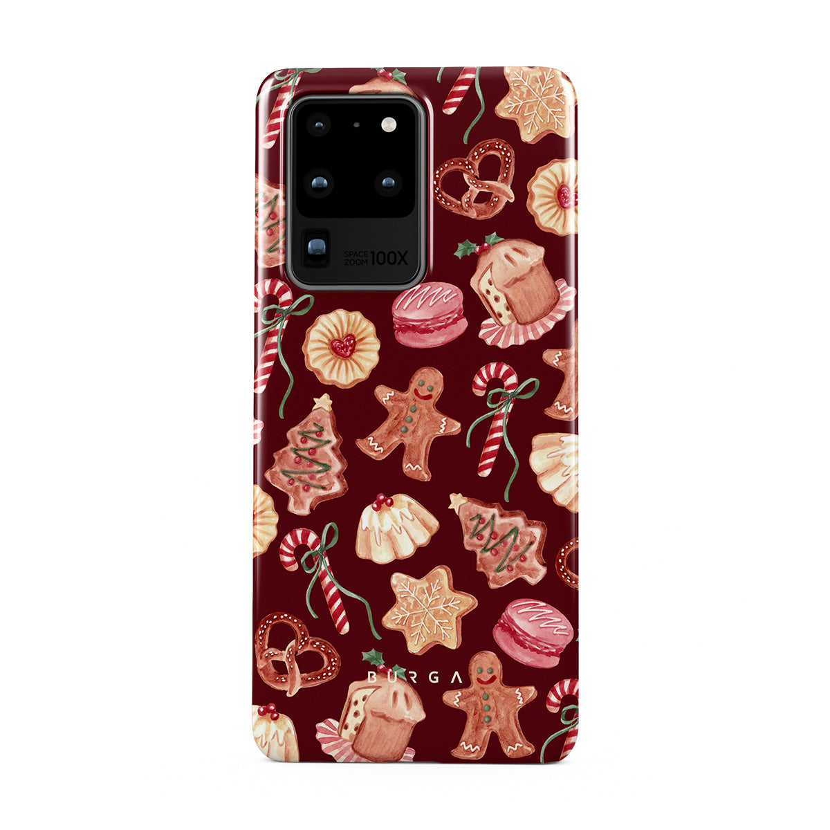 Główne elementy projektu: ciasteczka świąteczne, pierniczki, cukierki, cukierki miętowe, świąteczne słodycze, burgundowe tło