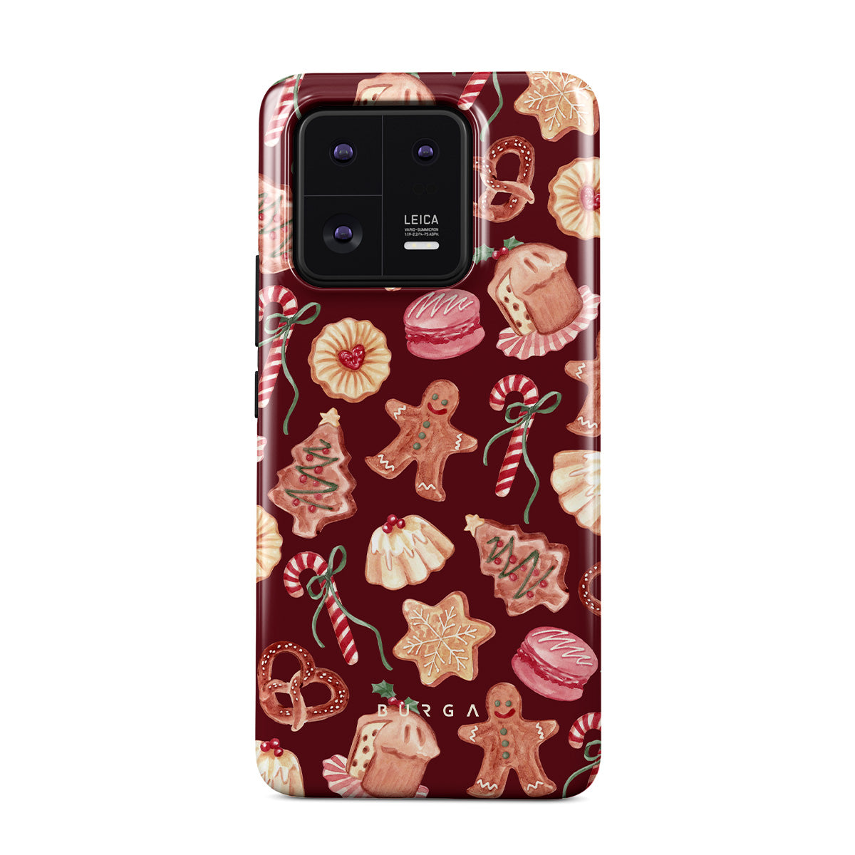 Główne elementy projektu: ciasteczka świąteczne, pierniczki, cukierki, cukierki miętowe, świąteczne słodycze, burgundowe tło
