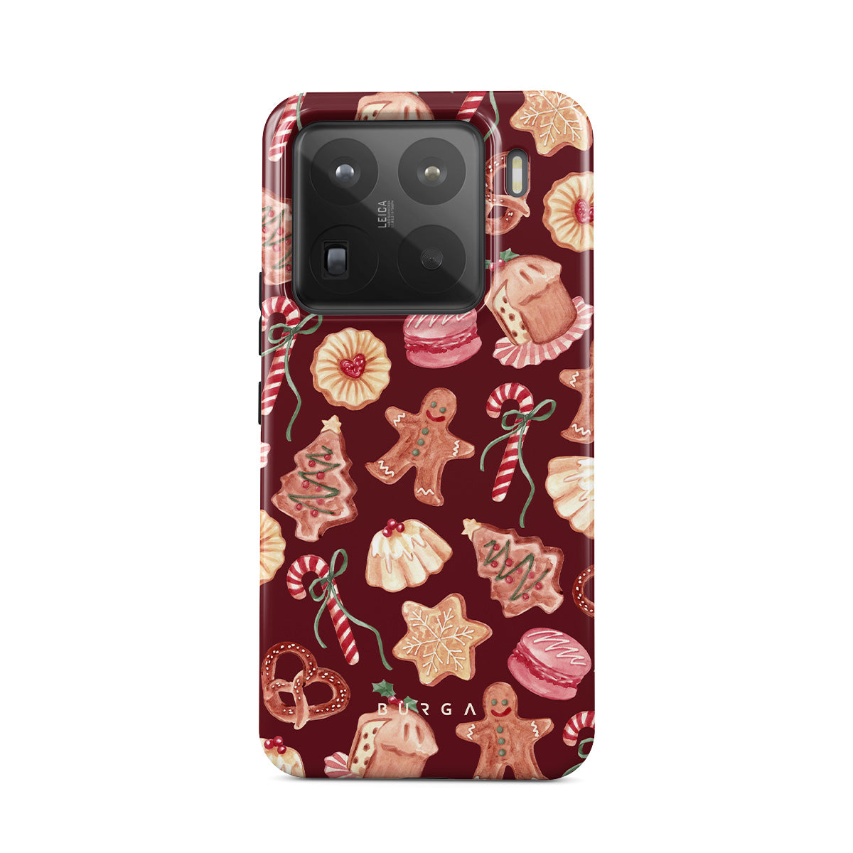 Główne elementy projektu: ciasteczka świąteczne, pierniczki, cukierki, cukierki miętowe, świąteczne słodycze, burgundowe tło