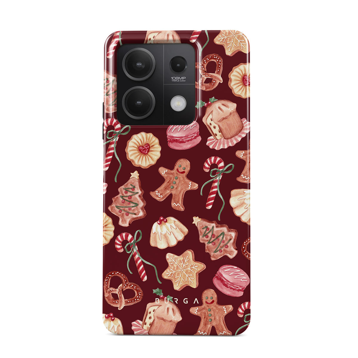 Główne elementy projektu: ciasteczka świąteczne, pierniczki, cukierki, cukierki miętowe, świąteczne słodycze, burgundowe tło