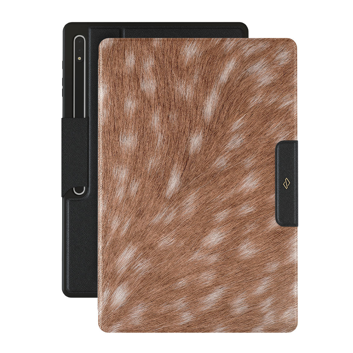 Główne elementy projektu: wzór przypominający futro, kolory ziemi, wzór naturalnego futra, wzór rustykalny, motyw zwierzęcy, styl country, jeleń, łania, koźlę.