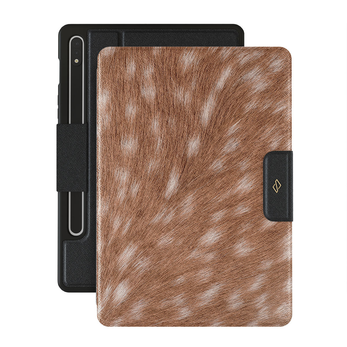 Główne elementy projektu: wzór przypominający futro, kolory ziemi, wzór naturalnego futra, wzór rustykalny, motyw zwierzęcy, styl country, jeleń, łania, koźlę.