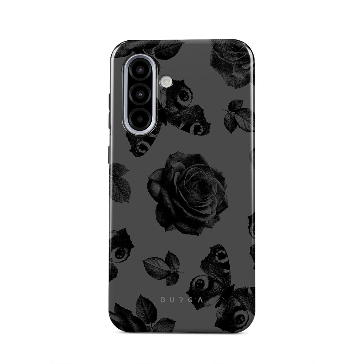 Główne elementy projektu: czarne róże, gotyckie motywy kwiatowe, ponure odcienie.