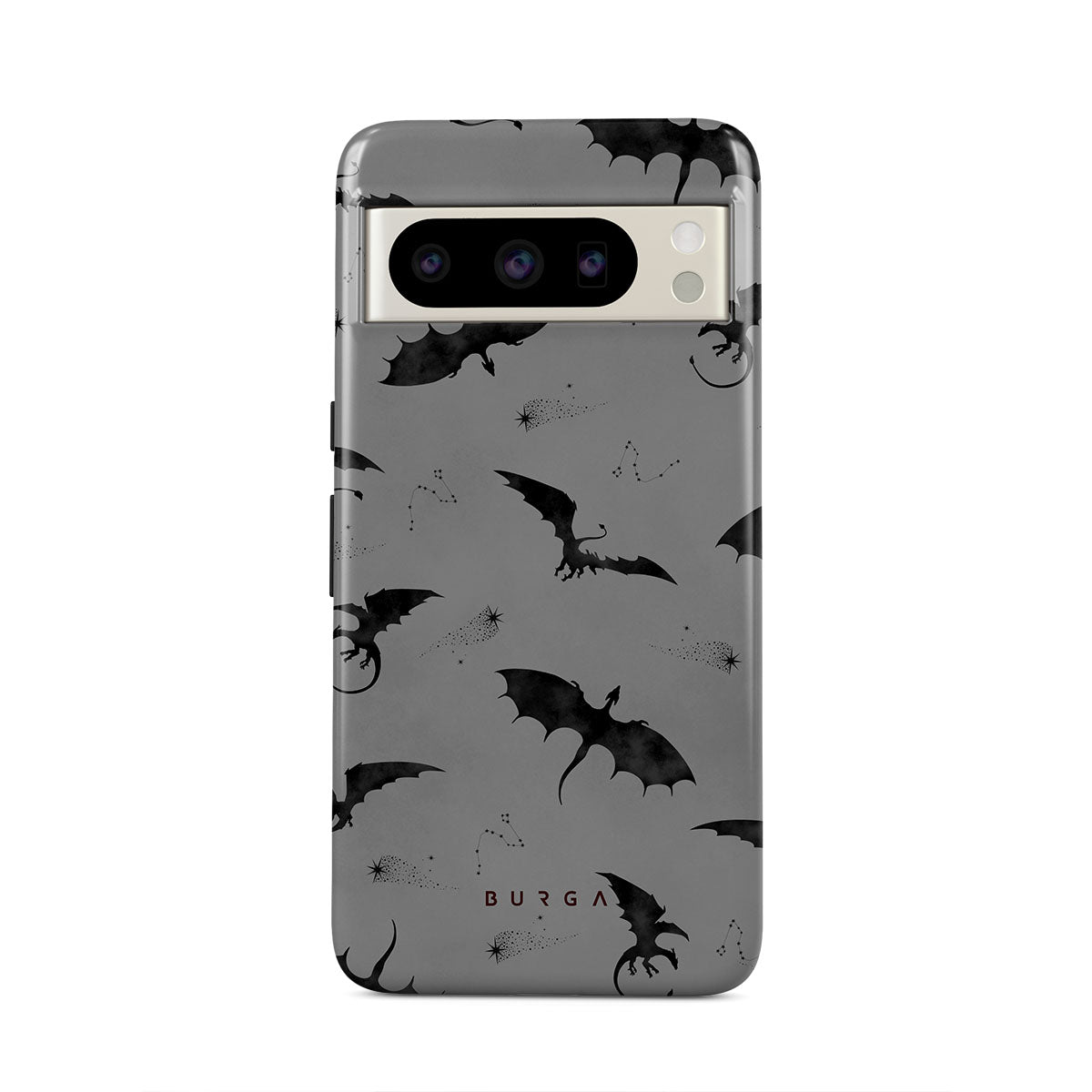 Główne elementy projektu: nietoperze, smoki, szare niebo, niebo nocą, mroczne istoty.