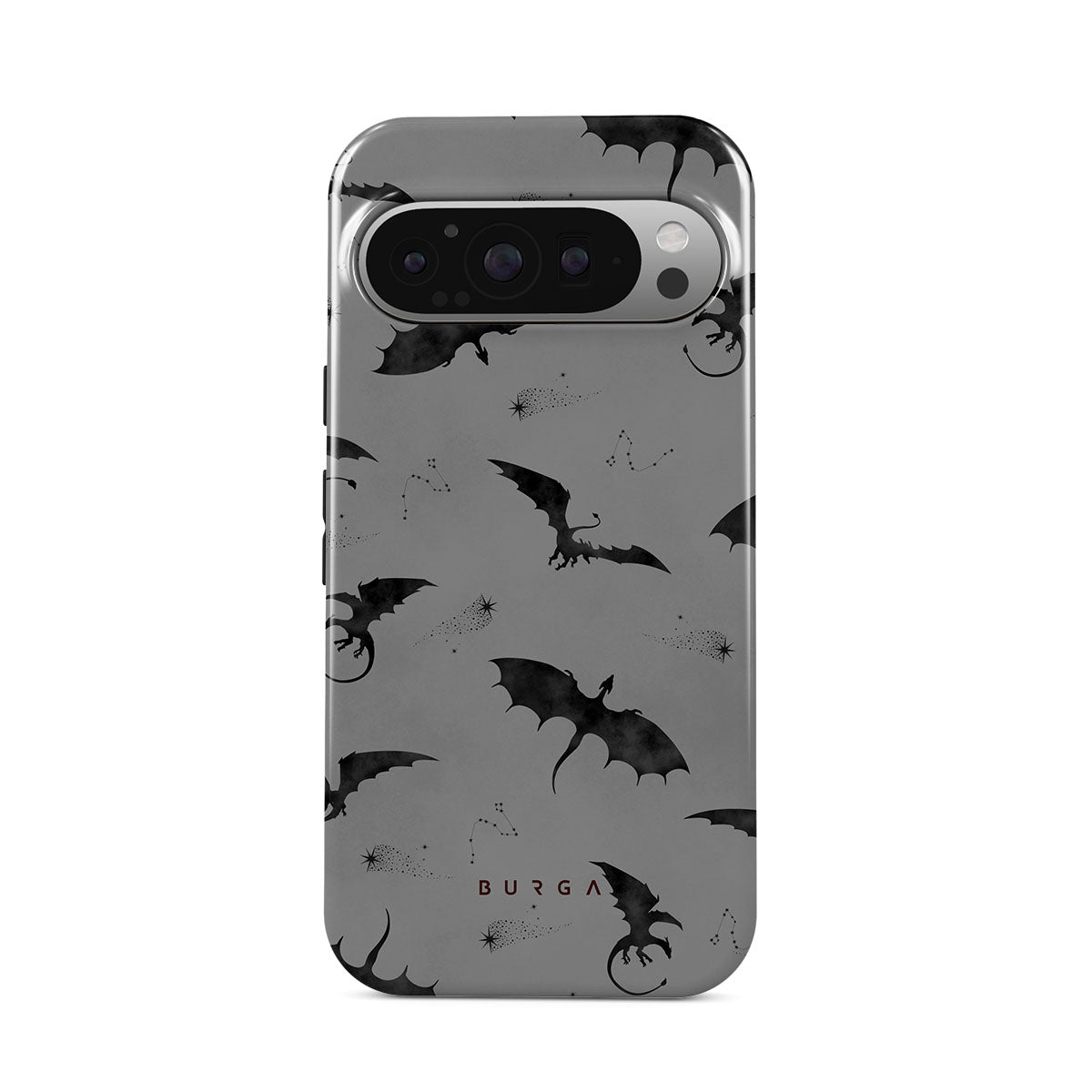 Główne elementy projektu: nietoperze, smoki, szare niebo, niebo nocą, mroczne istoty.