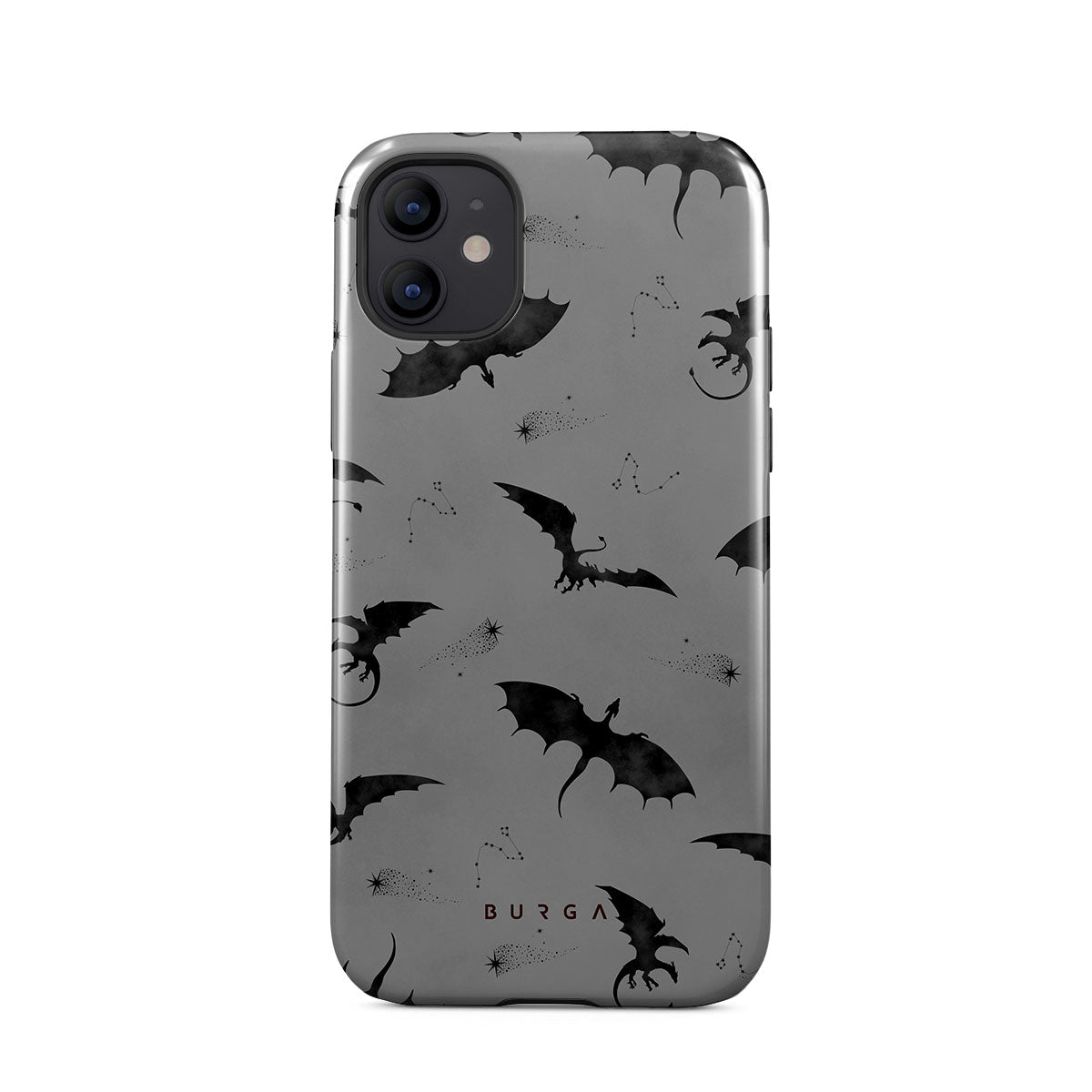 Główne elementy projektu: nietoperze, smoki, szare niebo, niebo nocą, mroczne istoty.