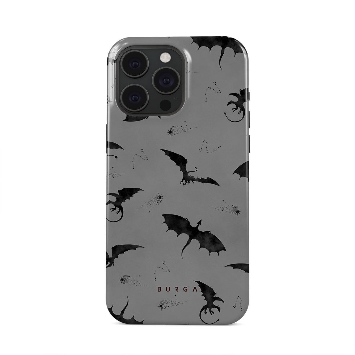 Główne elementy projektu: nietoperze, smoki, szare niebo, niebo nocą, mroczne istoty.