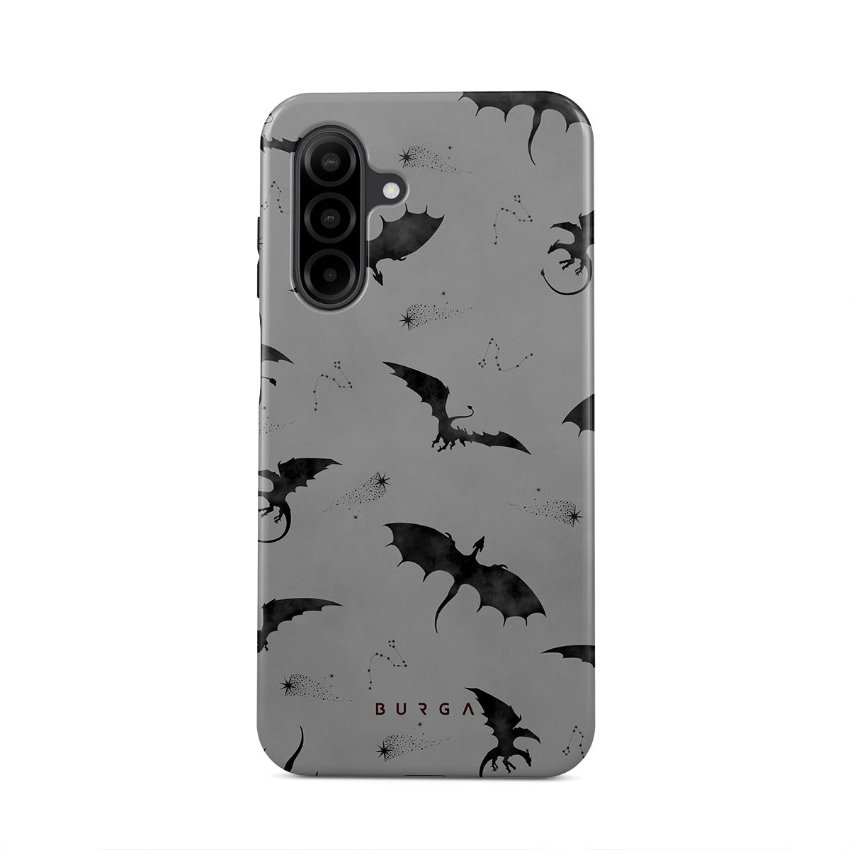 Główne elementy projektu: nietoperze, smoki, szare niebo, niebo nocą, mroczne istoty.