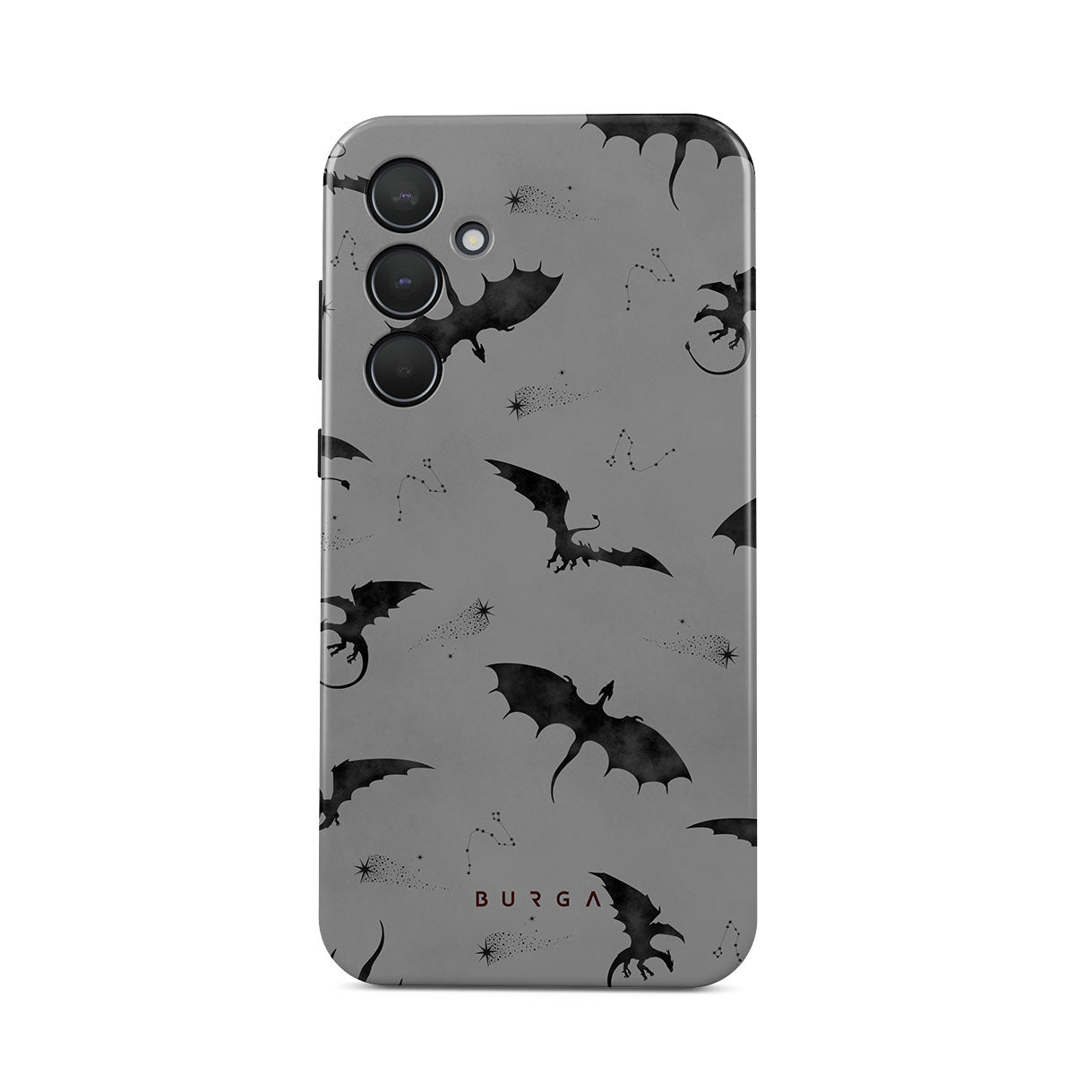 Główne elementy projektu: nietoperze, smoki, szare niebo, niebo nocą, mroczne istoty.