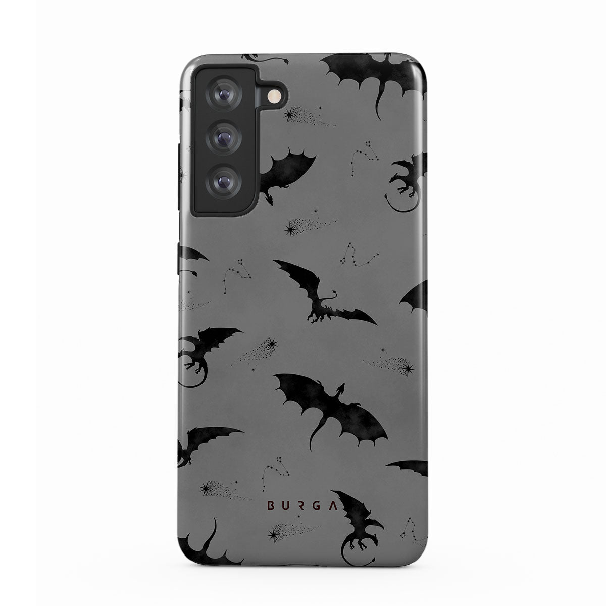 Główne elementy projektu: nietoperze, smoki, szare niebo, niebo nocą, mroczne istoty.