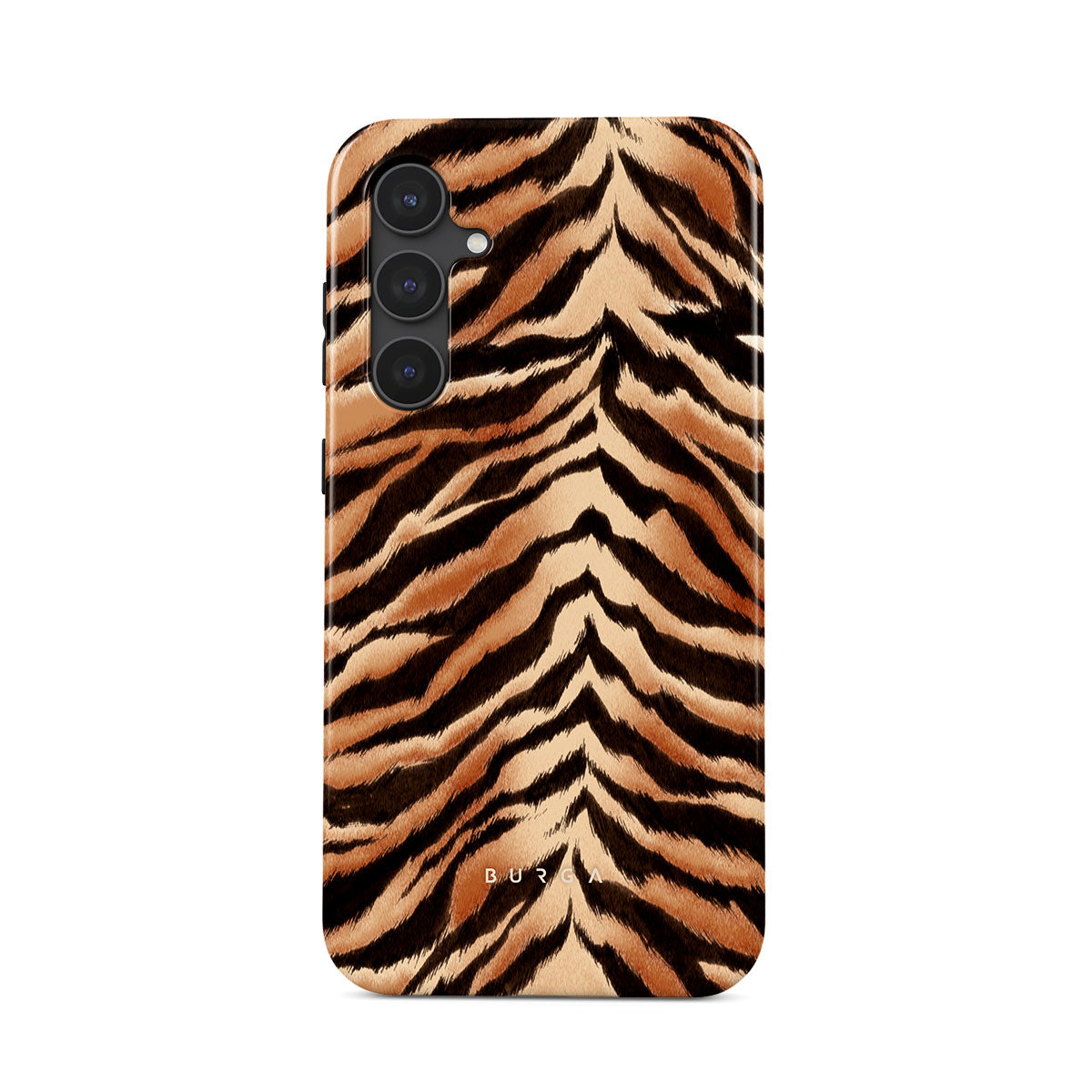 Główne elementy projektu: paski tygrysa, czarny, pomarańczowy, nadruk zwierzęcy, odważny wzór.