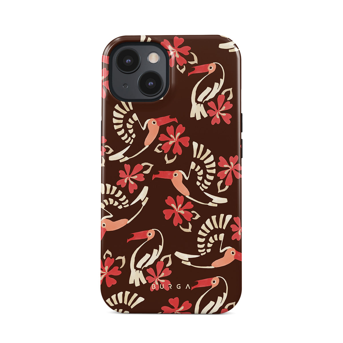 Główne elementy projektu: tropikalne ptaki, kwiaty, wzór inspirowany lasem deszczowym