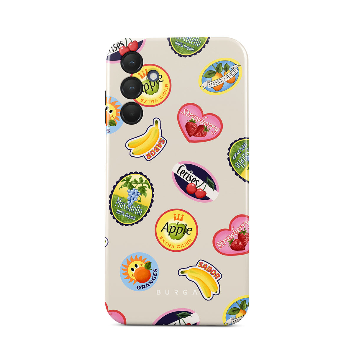 Główne elementy projektu: Banany, znaczki, wiśnie, jabłka, pomarańcze, truskawki, jaskrawe kolory, akcenty cytrusowe, motywy owocowe, tropikalne wzory.