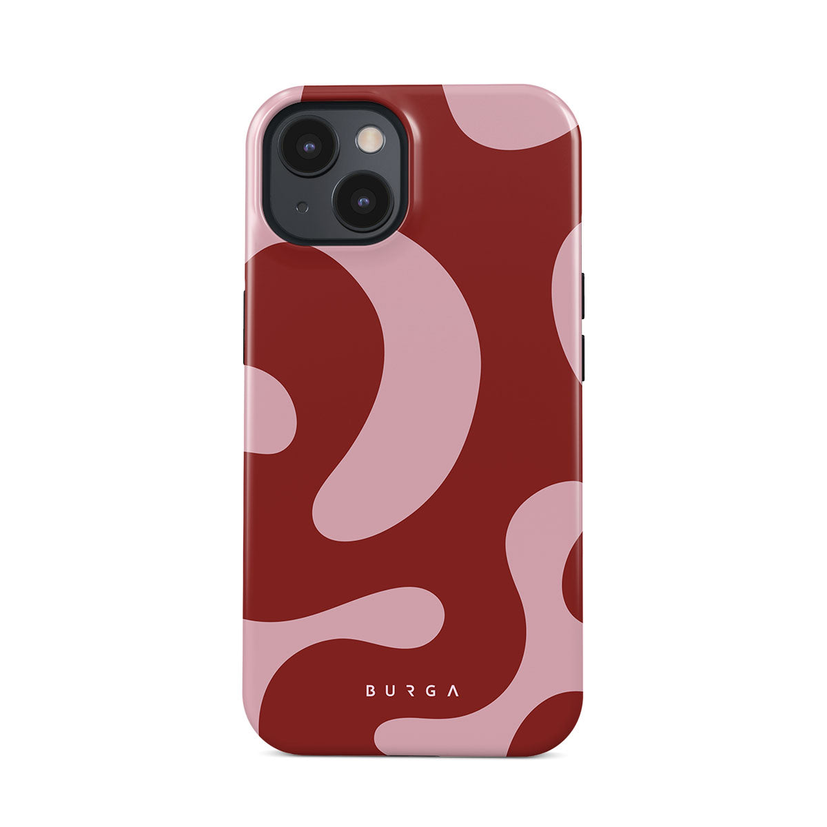Główne elementy projektu: fale, abstrakcyjny wzór, ciemnoczerwone zawirowania, różowe zawirowania.