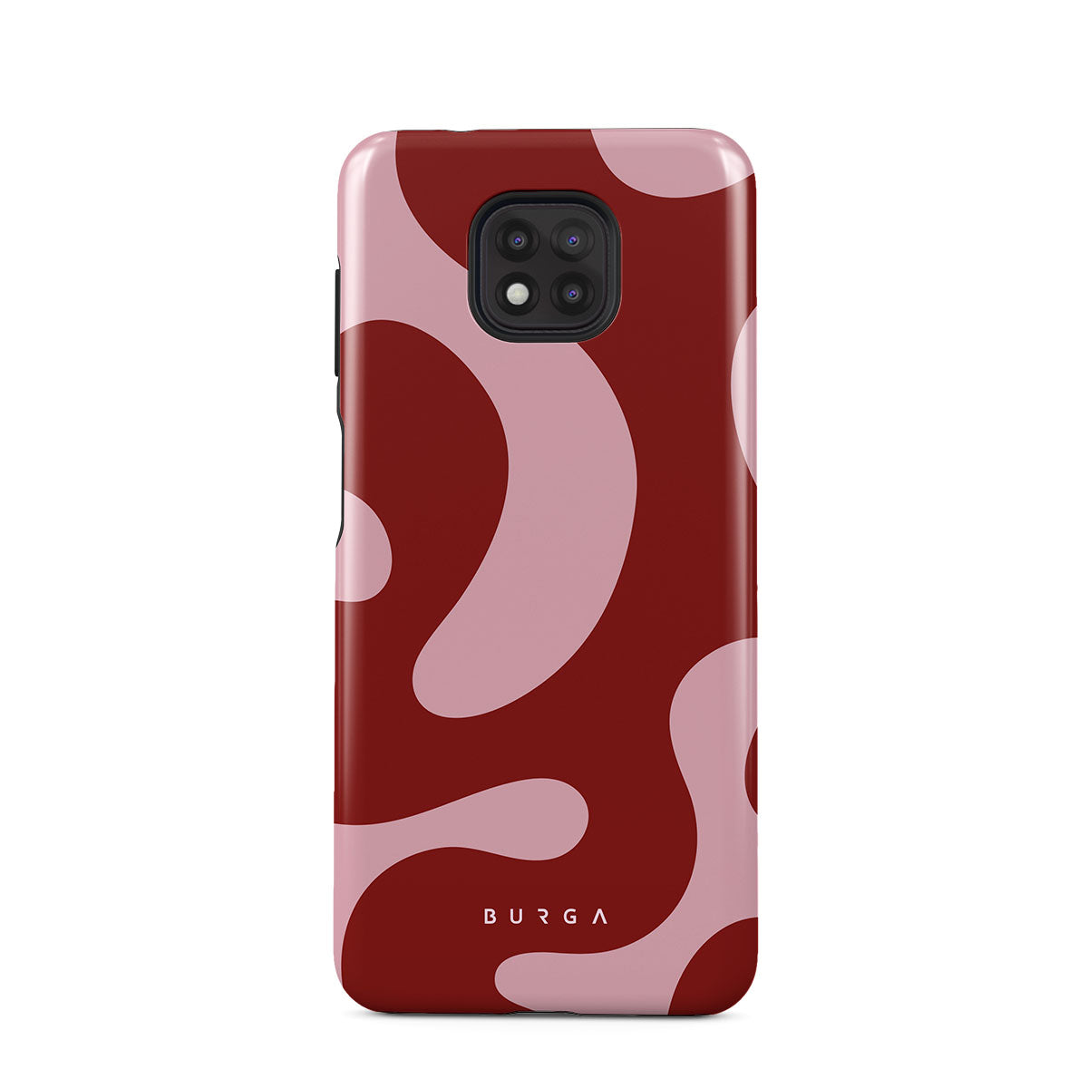 Główne elementy projektu: fale, abstrakcyjny wzór, ciemnoczerwone zawirowania, różowe zawirowania.